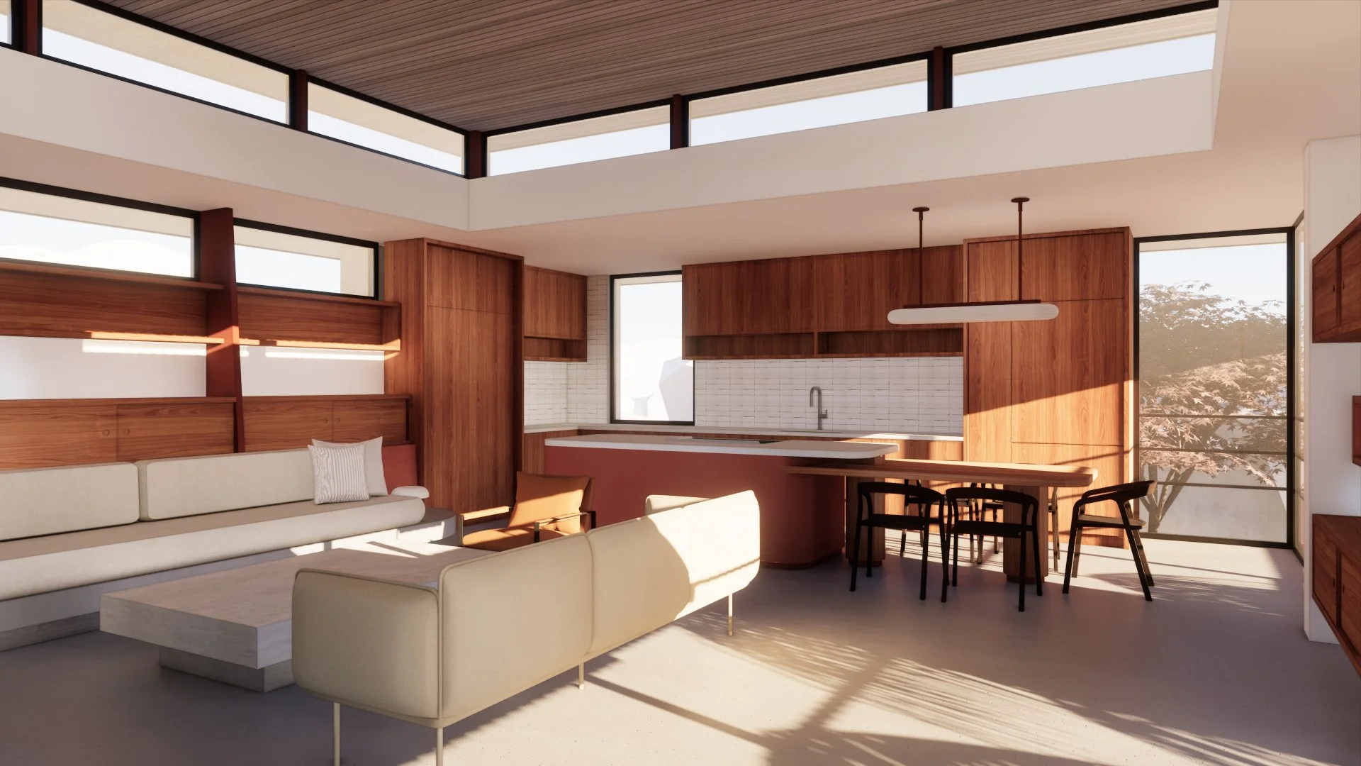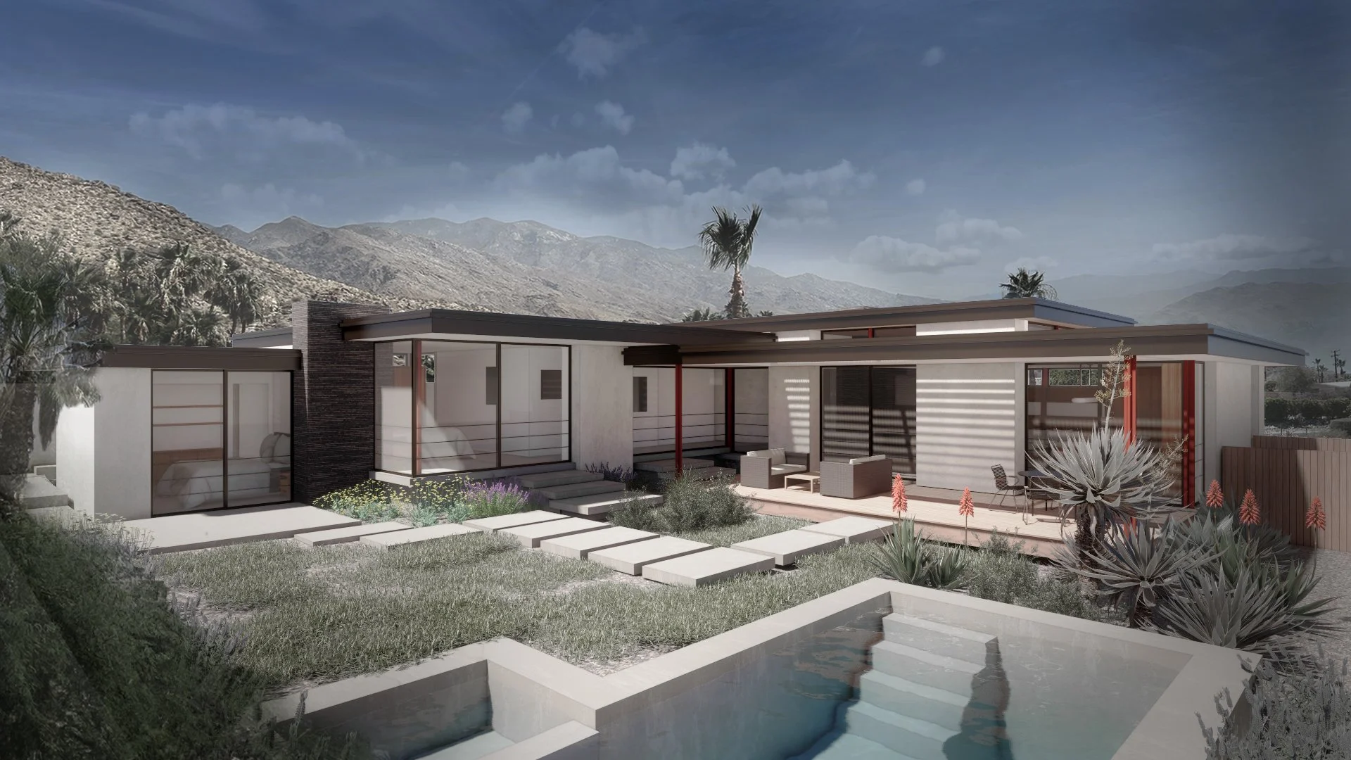 The parcel for this new home in Cathedral Cove has lovely desert and mountain views, but is surrounded by existing homes. Our goal was to selectively open up to certain views while creating privacy and multiple outdoor “rooms” for the owners to live outside throughout the winter. Multiple floor levels hugs the natural grade but also raises the bedroom wing for unobstructed views to the north. Construction is planned for 2025.